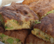 Literal meaning: Multi-layered. It is one of the most common dishes in Saudi Arabia, a pie stuffed with minced meat, leeks, and eggs. The mixture is spread on a rolled-out dough and fried on a wide iron griddle if it is savory. If it’s sweet, the filling can be made with bananas, sugar, sweet cheese, or cream. It is baked as is when it’s savory.